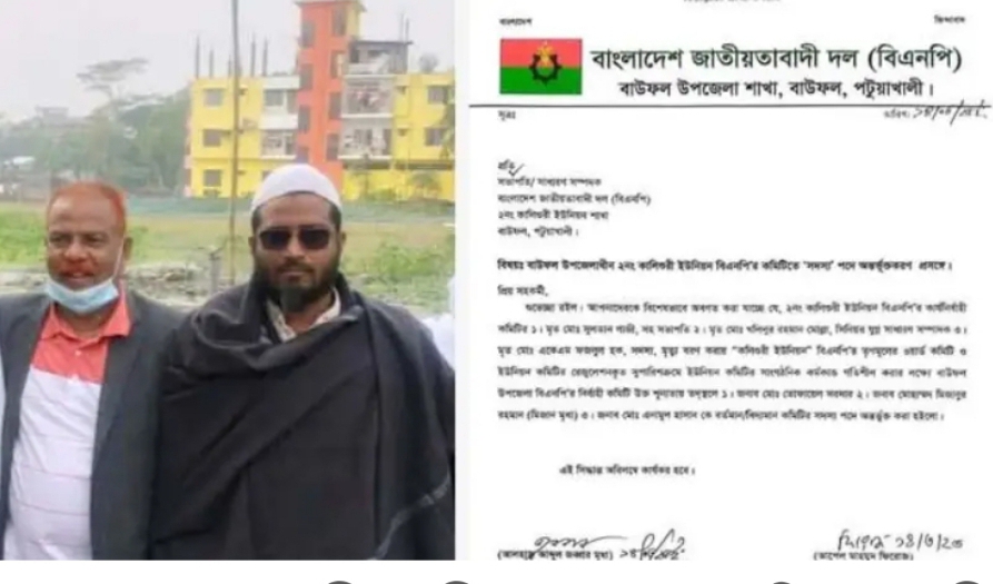 বাউফলে আ’লীগ কর্মী পেল বিএনপির সদস্য পদ।