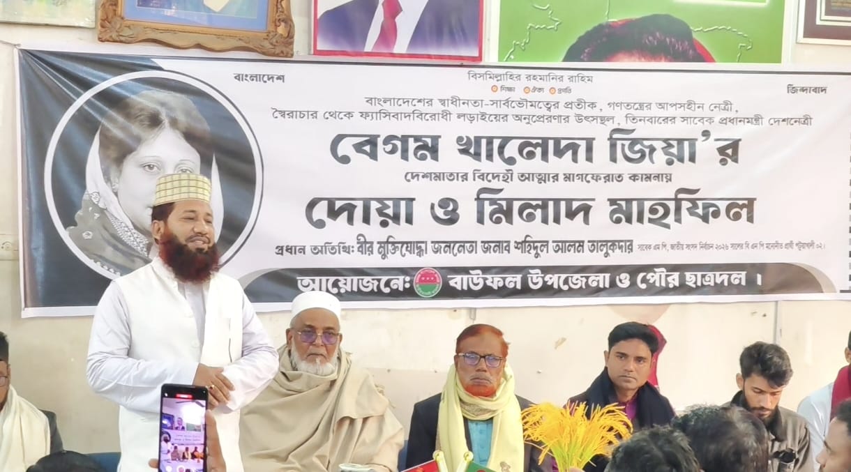 বেগম খালেদা জিয়ার বিদেহী আত্মার মাগফিরাত কামনা করে পটুয়াখালী- বাউফল আসনের বিএনপির এমপি পদ প্রার্থী সহিদুল আলম তালুকদারের পৌরসভাস্থ বাসভবনে দোয়া ও মিলাদ অনুষ্ঠিত হয়েছে।